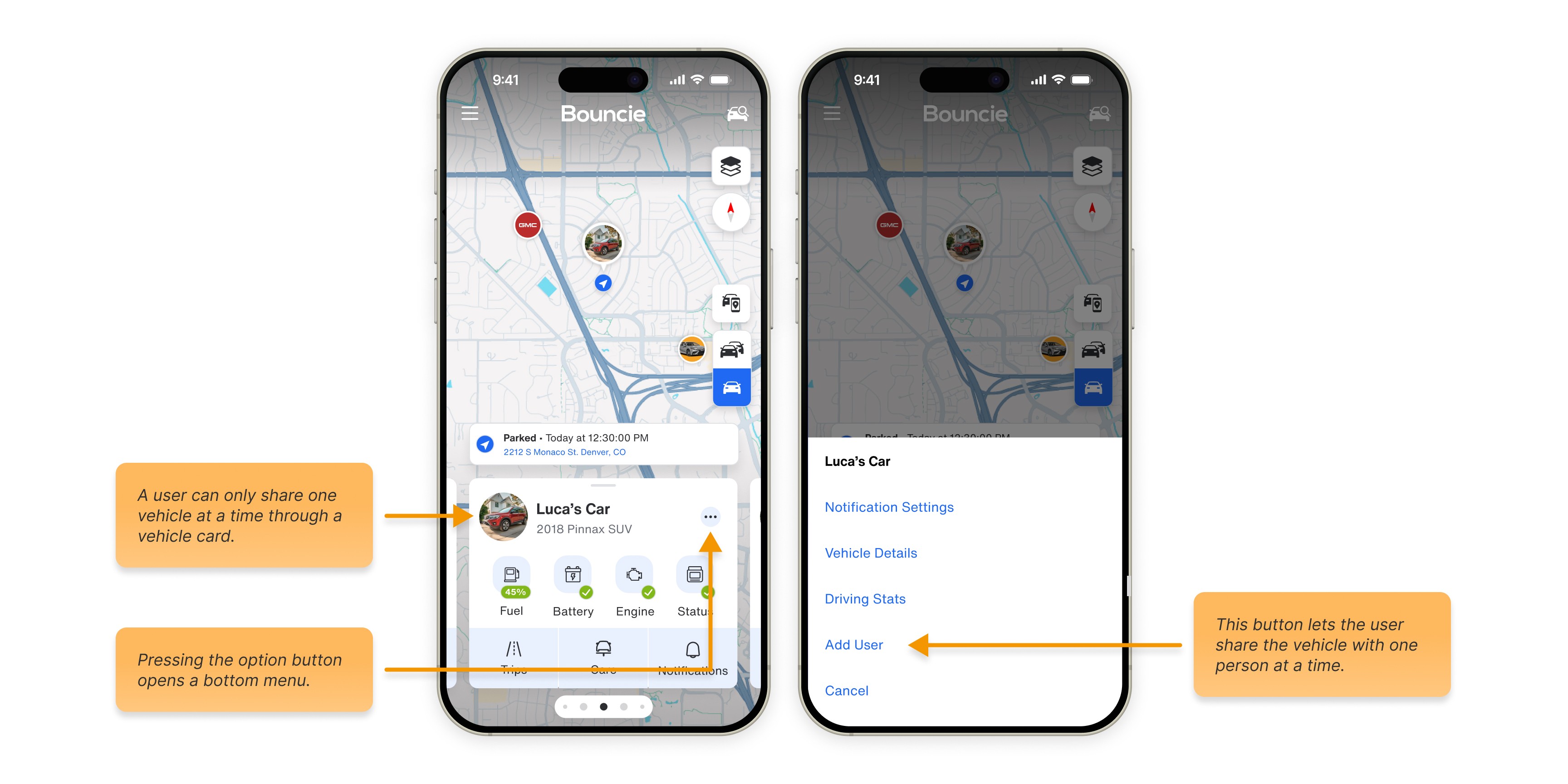 Bouncie provides vehicle tracking, diagnostics, and vehicle sharing—all from your phone