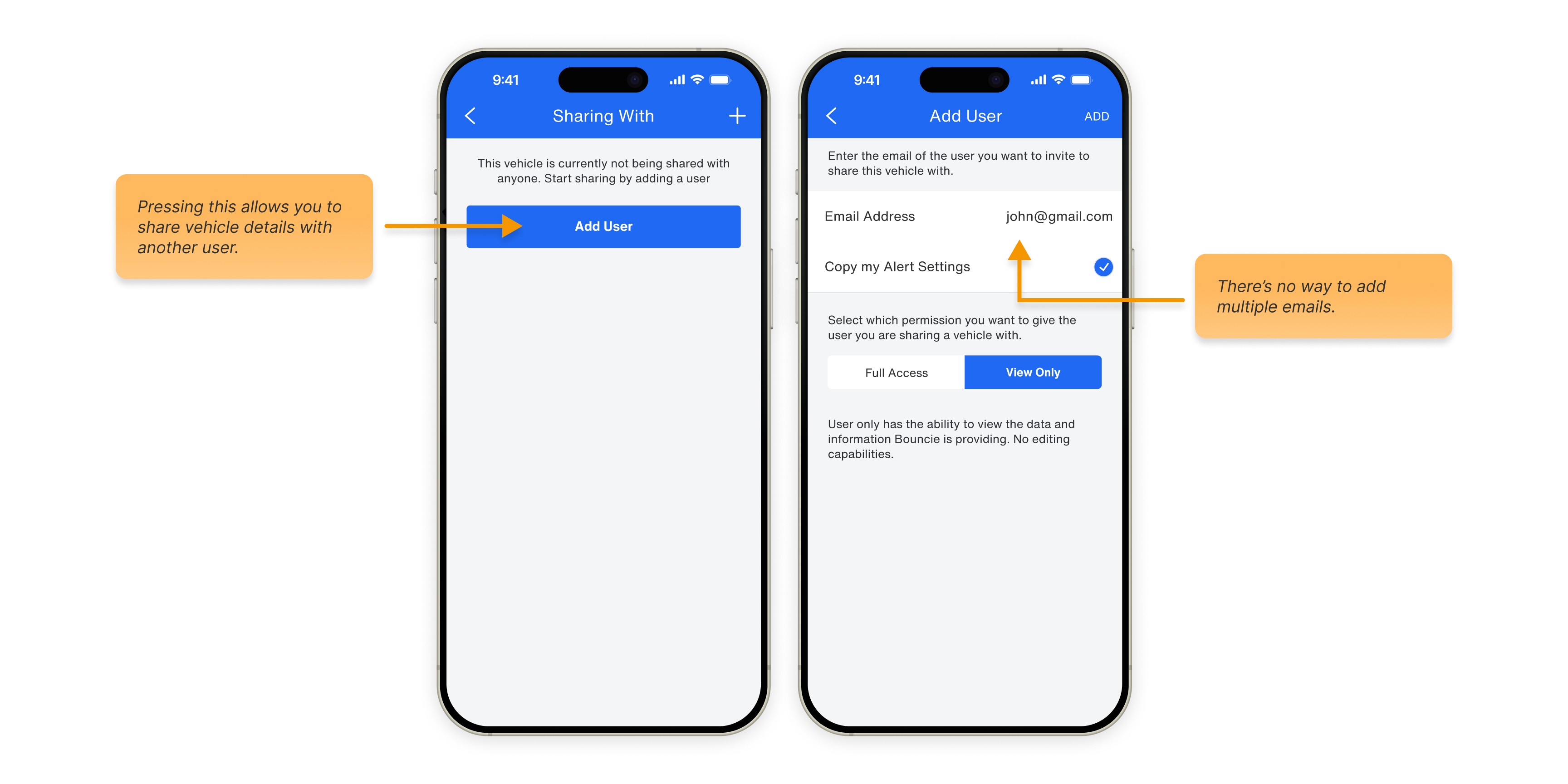 Sharing was limited to one vehicle wiith one user at a time, forcing users to repeat the process for each new vehicle and user